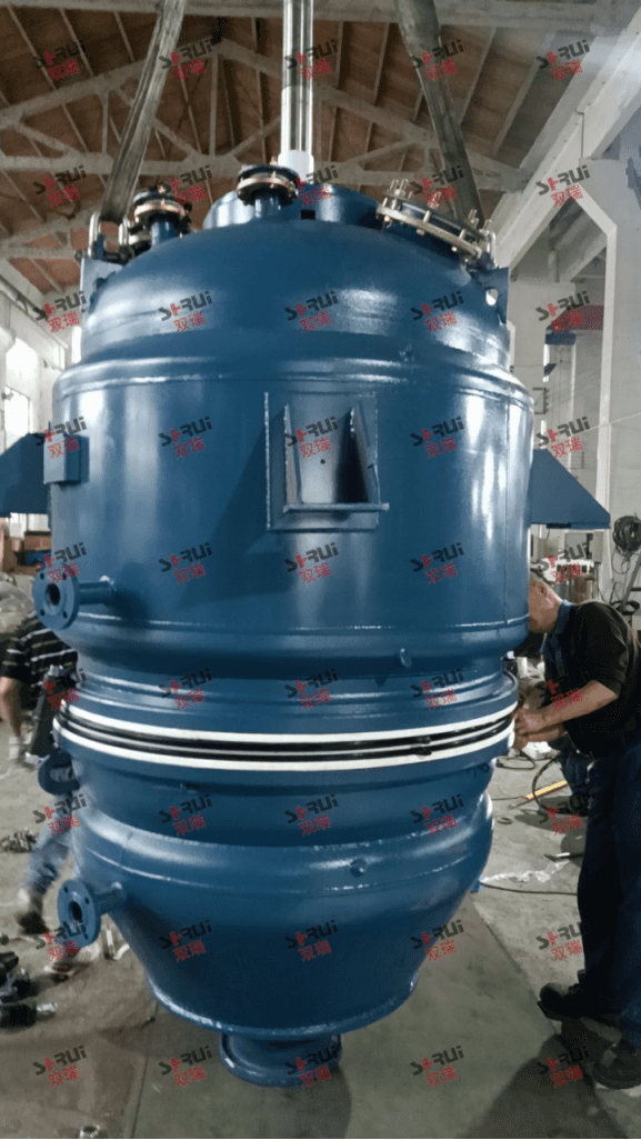 無錫市雙瑞機械有限公司近期裝配完成一臺1500L搪瓷筒錐式過濾洗滌干燥三合一設備。該設備專為鋰電添加劑領域的提純生產設計,具有低溫干燥的獨特優(yōu)勢,將極大提升鋰電添加劑的生產效率和產品質量。