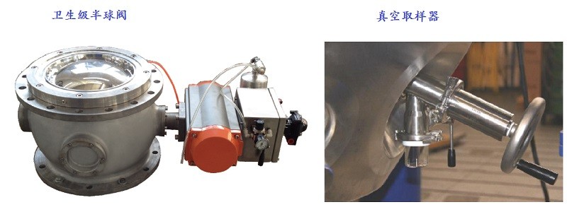 ??(5) 充氣密封半球閥:本半球閥是為滿(mǎn)足單錐真空干燥機(jī)進(jìn)料、出料的特殊需要而設(shè)計(jì),該閥按照精密的公差標(biāo)準(zhǔn)來(lái)制造,結(jié)合特殊結(jié)構(gòu)形成了良好的真空和壓力密封環(huán)境,標(biāo)準(zhǔn)的充氣密閉設(shè)計(jì),無(wú)死角、易清潔,符合GM標(biāo)準(zhǔn),可在線(xiàn)清洗。
