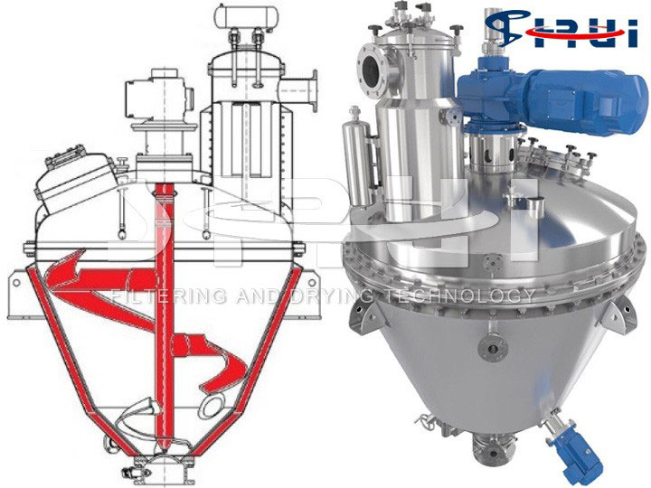 ??內(nèi)加熱螺帶單錐真空干燥機(jī)是一種集減壓蒸餾、粉碎、混粉、干燥為一體的高效多功能全密閉立式真空干燥設(shè)備。它的干燥效率是同等規(guī)格雙錐回轉(zhuǎn)真空干燥機(jī)、真空箱式烘3~5倍。