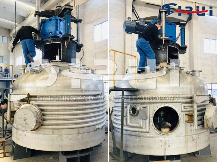??(5) 攪拌漿葉的升降和攪拌,使得清洗時濾餅和清洗液充分混合,濾餅得到充分洗滌,提高效率