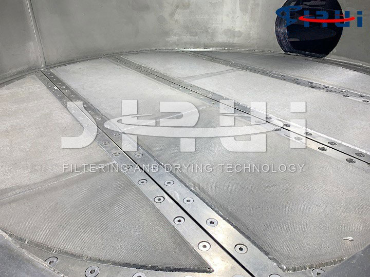 ??將上游反應(yīng)釜或結(jié)晶設(shè)備產(chǎn)生的固液混合物晶漿放料到三合一設(shè)備罐體內(nèi),以壓力差為推動力實現(xiàn)固液混合物的過濾分離。實際應(yīng)用中有加壓壓濾、真空抽濾以及加壓抽真空組合形式過濾等。加壓壓濾采用潔凈的壓縮空氣、氮氣或其他惰性氣體,具體應(yīng)根據(jù)固液混合物的特性選擇壓縮氣體。例如固液混合物易被氧化或固液混合物中有易爆介質(zhì),就不能采用壓縮空氣,而應(yīng)選用惰性氣體。根據(jù)實際經(jīng)驗,制藥行業(yè)一般產(chǎn)品壓濾壓力0.2~0.3MPa即可實現(xiàn)過濾,化工或食品行業(yè)一些產(chǎn)品需要較高的過濾壓力,有的壓力達(dá)到1.0MPa。