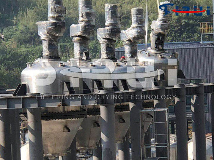過(guò)濾、多次洗滌過(guò)濾、干燥等單元操作,這些單元操作通常由結(jié)晶罐、壓濾機(jī)或離心過(guò)濾機(jī)、洗滌槽以及干燥機(jī)等單元設(shè)備單獨(dú)運(yùn)作,多種單元設(shè)備成一個(gè)長(zhǎng)流程的大裝置,設(shè)備間通過(guò)管道或其他方式輸送物料每個(gè)單元操作對(duì)應(yīng)相應(yīng)的單元設(shè)備,設(shè)備分散布置,使整個(gè)生產(chǎn)過(guò)程的廠(chǎng)房面積大幅度增加,同時(shí)也大大提高了設(shè)備的投資。