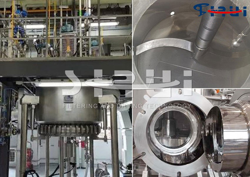 ??為了克服現(xiàn)有結晶干燥類原料藥生產設備生產中存在的問題與不足,無錫雙瑞進行了大量的設計研發(fā)工作,終于研制成功了新型無菌級平板過濾洗滌干燥機(專 利號:ZL202220704491.8),可在密閉環(huán)境下依次完成過濾、洗滌、干燥、固體卸料全過程,保證機組運轉不污染生產環(huán)境,缸內物料密閉轉移不受污染,這樣的設備會很容易被選擇用于FDA批準生產的藥物,設備更能輕松地通過GMP驗證。