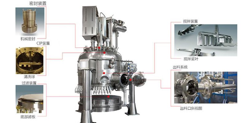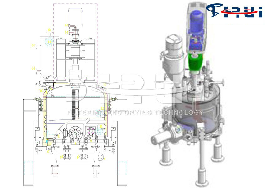 ??三合一設備把攪拌、過濾、洗滌、干燥等工藝過程在同一臺密閉設備內完成,因此避免了物料在轉移過程中異物的混入和微生物的污染,使產品質量得到充分的保證。